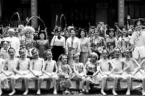 彭麗媛和部分國家領導人夫人在豫園與戲曲文藝表演者合影。 新華社新華視點發