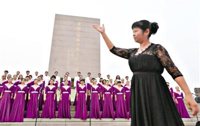 為紀念全民族抗戰爆發77周年,昨天下午六點,由北京市委宣傳部主辦,豐臺區委、豐臺區政府承辦的“勿忘國恥,圓夢中華”首都各界群眾歌詠活動在中國人民抗日戰爭紀念雕塑園中心廣場內舉行。 新京報記者 李禹潼 薛珺 攝影報道