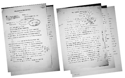 在紀念南京大屠殺遇難同胞70周年之際,國家檔案局宣布:我國學者在美國國家檔案館查閱有關中國抗戰檔案時,在美國外交關系檔案中發現了兩件珍貴檔案:一件是1937年12月14日,美國駐德國大使陶德致羅斯福總統的密電。密電中披露,日本駐德國大使東鄉茂德承認,在南京淪陷之前,日軍已殺死了50萬中國平民。另一件是1938年1月25日,美國駐上海總領事高斯就日軍在中國上海、杭州、蘇州的暴行給國務院的專題報告。