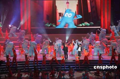 中新社上海十二月十八日電 (記者 許曉青)十八日晚間八時(shí)許,備受海內(nèi)外矚目的中國(guó)二0一0年上海世博會(huì)吉祥物在此間上海大舞臺(tái)揭開(kāi)神秘面紗。一個(gè)返璞歸真的、漢字“人”的藍(lán)色卡通造型——吉祥物“海寶”橫空出世。