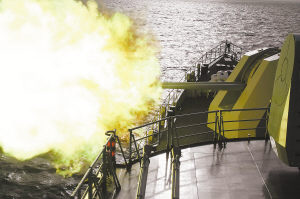 此次多國海上聯(lián)合軍演共設(shè)置對海上浮動目標(biāo)的主炮實彈射擊、海上夜間巡邏、海上護航等課目近20個。在3月8日下午進行的主炮對海射擊項目中,中國海軍“三明”艦和“連云港”艦將兩個浮體靶標(biāo)全部擊沉,取得了令人矚目的好成績。這也是中國海軍第一次在國外軍演中進行實彈射擊。