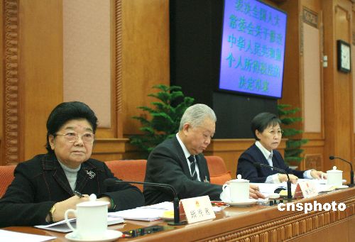 十屆全國人大常委會三十一次會議表決通過了,個人所得稅起征點自2008年3月1日起由1600元提高到2000元。中新社發 廖文靜 攝
