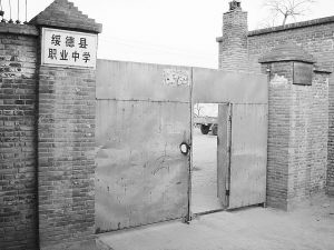車在半山腰停下,司機(jī)說“到了”。記者環(huán)顧四周,才發(fā)現(xiàn)在拐角處開著一扇銹跡斑斑的門,左邊掛個牌子:“綏德縣職業(yè)中學(xué)”。