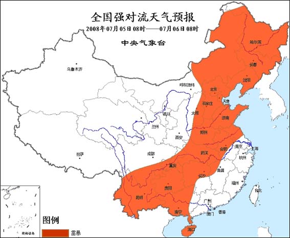 中新網(wǎng)7月5日電 據(jù)問(wèn)天網(wǎng)消息:中央氣象臺(tái)5日6時(shí)繼續(xù)發(fā)布強(qiáng)對(duì)流天氣預(yù)報(bào)。