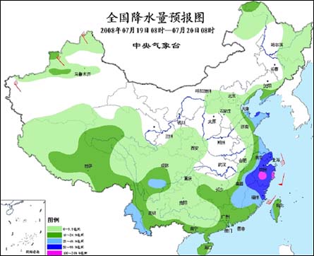 19日08時(shí)至20日08時(shí),新疆西北部和沿天山地區(qū)、西藏、青海大部、甘肅南部、寧夏南部、陜西中南部、內(nèi)蒙古東北部、東北西北部和東部、華北中東部、黃淮東部、江淮東部、江南大部、華南大部以及西南地區(qū)大部、臺(tái)灣等地有小到中雨或雷陣雨,其中,福建大部、浙江、廣東東北部、江西南部和東部、江蘇南部、上海以及山東半島等地有暴雨,福建北部、浙江中南部等地的部分地區(qū)有大暴雨,上述部分地區(qū)并將伴有短時(shí)雷雨大風(fēng)或冰雹等強(qiáng)對(duì)流天氣。新疆西北部有5-6級(jí)偏北風(fēng),東海和臺(tái)灣海峽有6-8級(jí)偏南風(fēng)。