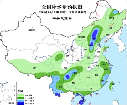 地震災區,今天有陣雨或雷雨,空氣濕度較大,雷雨時有短時陣性大風,局部地方有大雨到暴雨,明天有陣雨或雷雨,12日,以多云天氣為主。