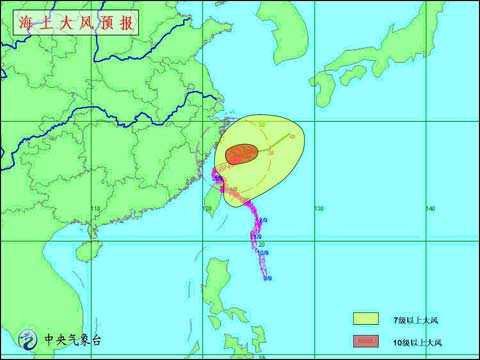 預計,今天白天到夜間,受強熱帶風暴“森拉克”影響,東海大部海域、臺灣以東洋面將有7-8級大風,“森拉克”中心經過的附近海域的風力可達9-10級。