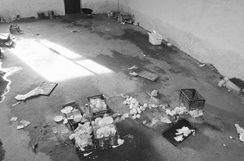 這里就是王女士所說的餐具消毒工廠的廠房。據工廠的女工說,北側的房子是老板睡覺的屋子,西側是車庫,東邊是刷洗餐具的地方,南邊的房子現在空著。