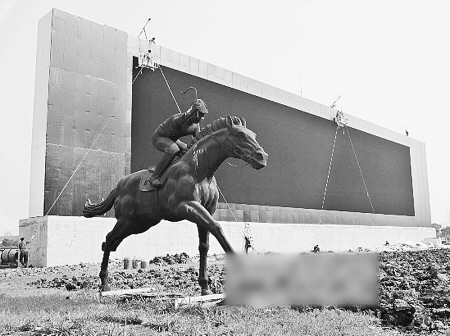 11月15日的武漢,東方馬城。三座銅像的旁邊,全國最大的戶外電視顯示屏這一天悄然落成。