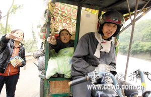 秦師傅說,他們都來自四川巴中平昌縣,駕車男子大都在廣東汕頭當貨三輪司機,女的則在私人塑料作坊,負責挑揀塑料。受金融危機影響,當地不少企業關了門,貨運業務沒了,女人也丟了工作,長期再在汕頭耗下去,沒有生活來源。眾人商議,還不如暫時回老家,穩定一段時間,再另謀出路。