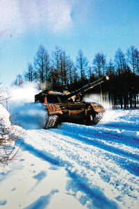 “‘?dāng)场粋營的兵力向我指揮所進犯,命你部迅速出擊!”正在野外進行冬季適應(yīng)性訓(xùn)練的沈陽軍區(qū)某裝甲團突然接到上級命令。坦克一營官兵用燃油加熱器快速對水箱和油箱進行加溫。不到10分鐘,鐵甲戰(zhàn)車卷著雪浪向茫茫林海深處駛?cè)ァ?