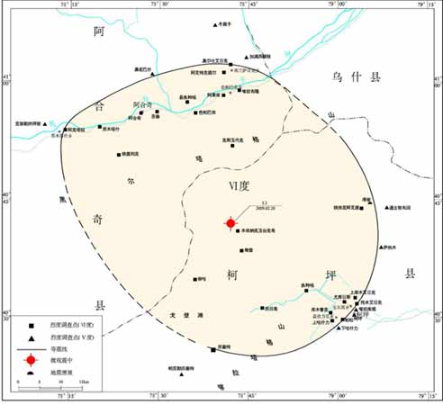 2009年2月20日18時02分,新疆維吾爾自治區阿克蘇地區柯坪縣(北緯40.42度,東經78.42度) 發生M5.2級地震。震源深度6千米。宏觀震中位于柯坪縣木伊那克玉臺克希牧民點附近(北緯40°43′、東經78°42′)。極震區烈度為Ⅵ度。該烈度區面積3600平方千米。