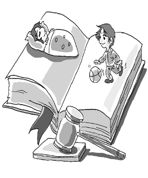 去年,江蘇省委、省政府曾印發(fā)《關(guān)于切實(shí)加強(qiáng)青少年體育增強(qiáng)青少年體質(zhì)的意見(jiàn)》,要求切實(shí)保障學(xué)生每天1小時(shí)體育活動(dòng),中小學(xué)全面實(shí)行大課間體育活動(dòng)制度。但是,有些學(xué)校在執(zhí)行中變了味兒,把課間十分鐘、眼保健操時(shí)間甚至學(xué)生吃飯時(shí)間也算在里面。為了避免執(zhí)行中的隨意性,該條例草案作出嚴(yán)格規(guī)定:中小學(xué)校應(yīng)當(dāng)保障學(xué)生每天在校體育課、課間操和課外體育活動(dòng)時(shí)間不少于1小時(shí)。中小學(xué)校實(shí)行大課間體育活動(dòng)制度,每天上午安排一次不少于二十五分鐘的課間體育活動(dòng)。