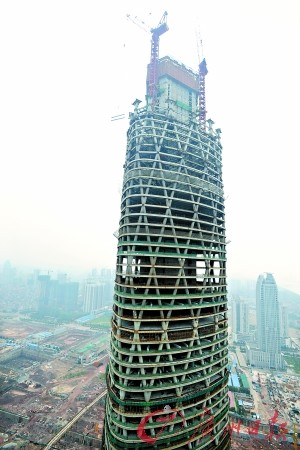 簡文豪表示,西塔目前已經封頂,計劃在2010年6月竣工投入使用。東塔在建筑高度、建筑體量、建筑功能和定位上,將與西塔相協調,繼2008年9月成功出讓后,要求在2015年竣工并投入使用。
