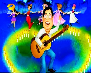 在這部類似《功夫熊貓》山水畫風格的卡通片中,趙小明露著門牙彈奏吉他,背景音樂是由美國著名鄉村歌手約翰·丹佛演唱的《Take Me Home,Country Roads》。