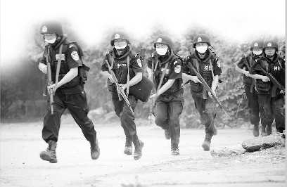 經過1小時的現場處置,當地警方將“恐怖分子”嚴密封控在工廠一區域內。但“恐怖分子”沒有絲毫棄械投降的意思,仍舊挾持人質與警方對峙,并威脅炸毀化工設施。此時,接到報警的河北省反恐指揮中心迅速啟動省級反恐預案,成立省級反恐指揮部,并派省級公安特警、武警、消防、衛生、氣象和環保力量,迅速趕往涿州現場增援處置。與此同時,國家也緊急調派國家反恐應急處置力量——— 武警“雪豹突擊隊”和解放軍“三防醫學救援隊”前往現場增援。