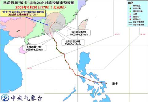 今年第4號熱帶風暴“浪卡”(NANGKA)的中心今天下午5時位于廣東省惠東縣南偏東大約140 公里的南海北部海面上,就是北緯21.4度、東經(jīng)115.3 度,中心附近最大風力有9級(23米/秒)。