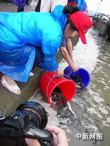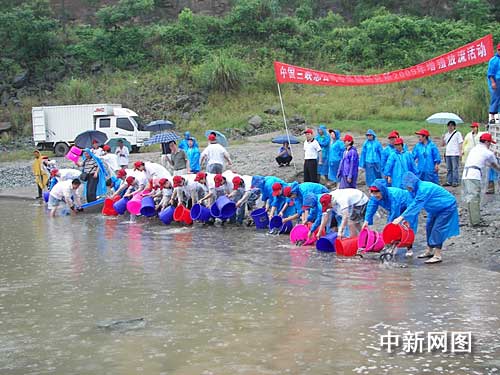 中新網宜昌6月30日電(記者 郭曉瑩)三峽開發總公司中華鱘研究所29日在長江宜昌江段(江南櫻桃園碼頭)舉行了2009年度第二次中華鱘放流活動,這也是該所第49次放流中華鱘。
