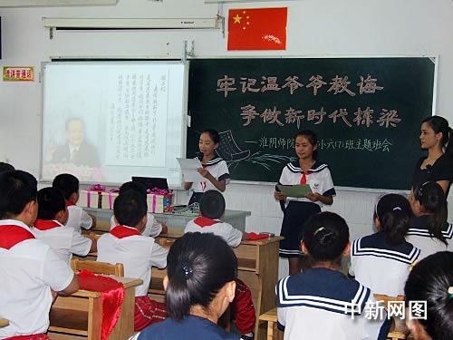 主題班會(huì)上,淮陰師范學(xué)院第一附屬小學(xué)的學(xué)生們還向淮安全市的少先隊(duì)員發(fā)出了“牢記溫爺爺?shù)慕虒?dǎo),像周總理一樣從小樹立‘為中華之崛起而讀書’遠(yuǎn)大志向”的倡議。淮安市委書記劉永忠、淮安市委常委、宣傳部長(zhǎng)劉希平等領(lǐng)導(dǎo)參加了主題班會(huì),并向孩子們贈(zèng)送圖書,鼓勵(lì)孩子們牢記溫總理的教導(dǎo),好好學(xué)習(xí),將來(lái)為家鄉(xiāng)的建設(shè)做貢獻(xiàn)。