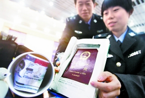針對偷渡犯罪的猖獗,邊檢總站加大培訓民警識別偷渡人員的力度,同時采取高科技檢測手段識別偽假證件。記者在現場看到,目前民警使用的最新式檢查護照簽證儀器,最小只有鼠標大小,可隨身攜帶,還有快速“刷”護照的證件閱讀機,民警把護照在機器上一“刷”,讀取信息同時就能識別護照上的防偽標識。