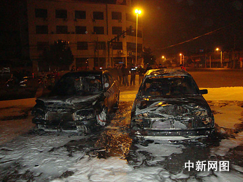 中新網(wǎng)常州十一月十二日電(陳佳 朱曉穎)12日凌晨兩點(diǎn)半,常州市武進(jìn)區(qū)夏城路與廣電路交叉路口發(fā)生了一起汽車自燃事故,其旁邊的一輛小轎車同時(shí)燃燒。常州消防武進(jìn)特勤中隊(duì)接警后迅速出動1車、6人趕赴現(xiàn)場,經(jīng)過近半個(gè)小時(shí)的緊張?zhí)幹茫饎荼怀晒錅纾珒奢v車幾近報(bào)廢。