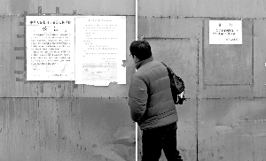 鐵門一側的墻上,貼著一張接待室遷址的通知,也已被撕得殘破不全。兩側搭建著10來個大大小小,形狀各異的塑料棚。一位衣衫襤褸的中年婦人從棚里彎腰走出來,“法院(接訪室)已經搬啦,周六就關門了。”她從衣服兜里掏出一張購物小票大小的通知,上面印著搬遷通知以及新址乘車路線圖,通知落款為最高人民法院立案一庭。