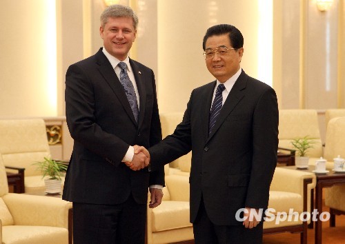 胡錦濤會見加拿大總理 哈珀“實現兒時愿望”