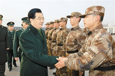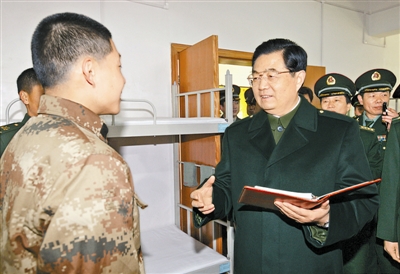 1月的關(guān)中大地寒風(fēng)襲人,軍營(yíng)里卻暖意融融。正在陜西省考察工作的中共中央總書(shū)記、國(guó)家主席、中央軍委主席胡錦濤,專(zhuān)程來(lái)到蘭州軍區(qū)某部高炮旅視察。