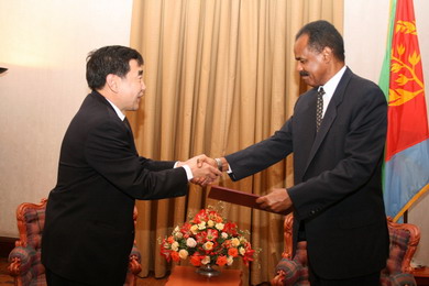 中新網2月23日電 據外交部網站消息,中國新任駐厄立特里亞大使李連生20日在厄總統府向伊薩亞斯總統遞交國書。