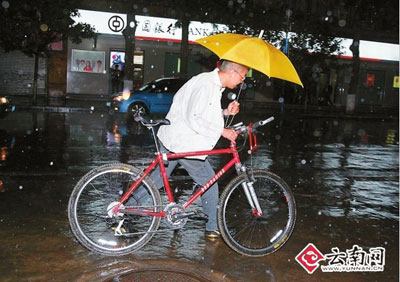 黑壓壓的烏云籠罩了昆明兩個小時之后,昨晚8點,一場從去年9月以來最大的降雨光臨昆明。當豆大的雨點落在昆明家家戶戶的窗戶上時,市民都興奮了。大家的感覺沒有錯,昨天晚上的那場降雨確實是干旱以來的最大一場。雖然降雨只持續了約一個小時,但是電閃雷鳴間,這場雨已經完全澆濕了昆明城。