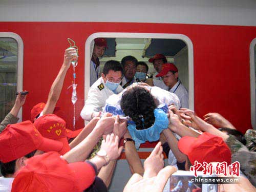 由于此次轉(zhuǎn)運的傷員大部分行動不便,蘭州車站安排了80多名技術(shù)工人拆卸車窗玻璃,并專門辟出一站臺為運送玉樹災(zāi)區(qū)傷員“綠色通道”。