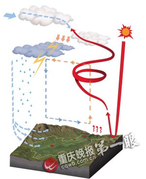 對于此次暴風,市氣象臺專家解釋,受中高緯大環流形勢的影響,5日白天,我市氣溫急升,各地高溫飆至30℃~34℃,本地不穩定能量聚集,此時,北方冷空氣抵達四川盆地北部邊緣。5日入夜后,冷空氣繼續迅速南下,觸發了重慶不穩定能量的強烈釋放,我市自西向東不斷有強對流云團生成,部分對流云團前部形成了很強的下沉氣流,下沉氣流到達地面就成了強烈的大風。在另外一些地區,由于不斷有對流云團生成或移過則形成強降水。