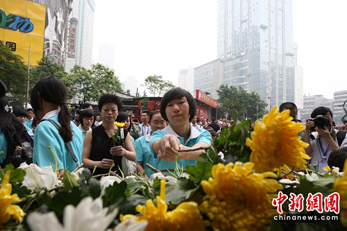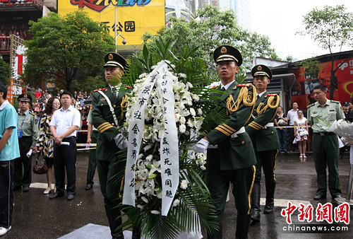 今天,重慶有500余名市民在“重慶大轟炸慘案隧道遺址”前敬獻(xiàn)鮮花,以紀(jì)念在“重慶大轟炸”中遇難的同胞。