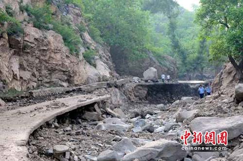 據介紹,13日晚20時許,淶水縣九龍鎮突降百年不遇特大暴雨,并伴有大風冰雹,頃刻間,山洪裹著巨石、泥漿呼嘯而下,席卷了九龍鎮沿河道的六個村莊,致使嶺南臺、莊里、莊頭、高鋪、柏林城、南莊六個村受災嚴重。據初步估算,受災人口3100多人、牲畜2000多頭(只),倒塌損壞房屋499間、橋梁5座、車輛31輛,毀壞道路10.7公里、耕地1312畝、樹木16925棵,另有兩人失蹤,直接經濟損失達8197.8萬元。