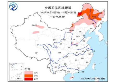 中新網(wǎng)6月25日電 中央氣象臺今日18時(shí)繼續(xù)發(fā)布高溫藍(lán)色預(yù)警:預(yù)計(jì)明天白天,內(nèi)蒙古中東部、黑龍江、吉林大部、山西西南部、河南北部、海南中北部等地有35~37℃的高溫天氣,其中,內(nèi)蒙古東北部局地最高氣溫可達(dá)38℃以上。