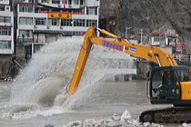 泥石流是山體松動造成的,常常發生在半干旱的山區或高原冰川區。這里地形陡峭,樹木植被很少,一旦暴雨來臨或冰川解凍,石塊吸足了水分,便出現松動,開始順著斜坡向下移動。隨著互相擠壓、沖撞,大大小小的泥石夾雜著泥漿水,匯成一股巨大的洪流滾滾而下,于是就出現了泥石流。