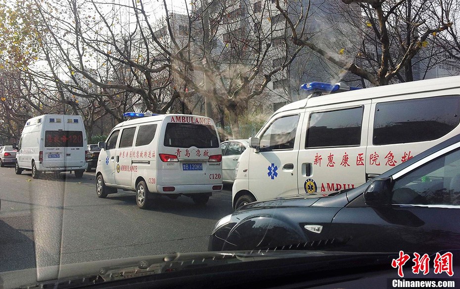 青島輸油管線破裂致多人死傷 救護(hù)車趕赴現(xiàn)場
