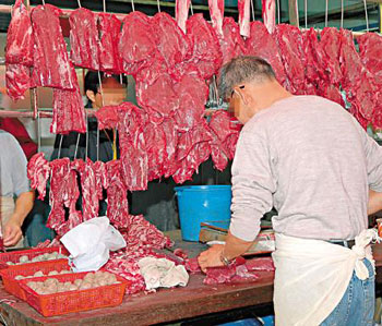 業(yè)界人士透露,市面有超過70%肉檔將冷藏肉充新鮮牛肉出售,因?yàn)橐袁F(xiàn)時的牛肉供應(yīng)量,根本不足應(yīng)付需要。他稱,牛肉市場被五豐行壟斷,供應(yīng)量由去年的120只驟減至現(xiàn)時每日約70多只,令牛肉出現(xiàn)供不應(yīng)求情況,以至市面充斥冒牌新鮮牛肉。