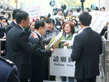 一月十五日下午,香港特區行政長官曾蔭權(左)出席立法會會議,答復議員的提問。 中新社發 譚達明 攝