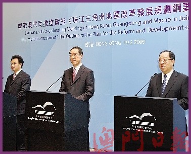 粵港澳三地在“粵港澳共同推進(jìn)實(shí)施《珠江三角洲地區(qū)改革發(fā)展規(guī)劃綱要》聯(lián)絡(luò)協(xié)調(diào)會(huì)議”后,決定重點(diǎn)推展基礎(chǔ)設(shè)施和促進(jìn)交通聯(lián)系、新區(qū)及跨境區(qū)建設(shè)、企業(yè)轉(zhuǎn)型升級(jí)、金融、科技創(chuàng)新、促進(jìn)三地區(qū)域發(fā)展與城市規(guī)劃方面的協(xié)調(diào)、旅游及環(huán)境保護(hù)8個(gè)項(xiàng)目。