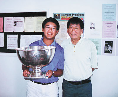 中新網7月28日電 據美國《世界日報》報道,14歲的華裔少年劉繼(Jim Liu)24日打破了老虎伍茲的紀錄,成為美國青少年高爾夫錦標賽史上最年輕的冠軍,他25日返回紐約長島Smithtown家中,26日立即把新贏得的大獎杯抱到皇后區,與教他數學多年的張信堃老師一同分享他的榮耀與喜悅。