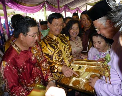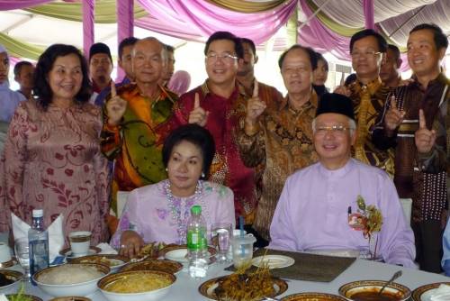 中新網(wǎng)9月19日電 據(jù)馬來西亞《星洲日?qǐng)?bào)》報(bào)道,馬來西亞首相納吉18日回到選區(qū)北根舉辦開齋節(jié)門戶開放活動(dòng),華總會(huì)長(zhǎng)方天興率領(lǐng)彭亨華人社團(tuán)聯(lián)合會(huì)及彭亨中華工商會(huì)眾領(lǐng)袖一起出席,并贈(zèng)送月餅予首相,象征月圓、人圓、全民團(tuán)結(jié)!