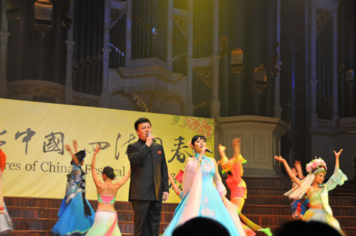 當(dāng)?shù)貢r(shí)間2月20日,21日由國(guó)務(wù)院僑辦、中國(guó)海外交流協(xié)會(huì)組派的“文化中國(guó)•四海同春”赴大洋洲藝術(shù)團(tuán)在著名的悉尼市政廳劇院連續(xù)舉行了兩場(chǎng)慰?jī)S演出。首場(chǎng)演出是2月17日,中國(guó)農(nóng)歷新年的大年初四,在澳大利亞墨爾本達(dá)拉斯布魯克斯音樂廳。雷鳴般的掌聲回蕩在劇院內(nèi),經(jīng)久不息。動(dòng)聽的歌聲、悠揚(yáng)的樂曲,曼妙的舞姿令觀眾如醉如癡。三場(chǎng)演出都獲得了巨大成功,引起轟動(dòng)。當(dāng)?shù)刂髁魃鐣?huì)紛紛發(fā)來賀信。