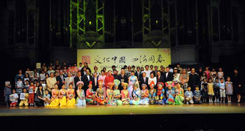據(jù)報(bào)道,連日來“文化中國(guó)•四海同春”藝術(shù)團(tuán)在北美洲、南美洲、歐洲、亞洲的演出也是盛況空前。與演出同時(shí)舉辦的還有題為《中華民族全家福》大型圖片展覽。在中國(guó)農(nóng)歷虎年春節(jié)期間,國(guó)務(wù)院僑辦和中國(guó)海外交流協(xié)會(huì)將一臺(tái)臺(tái)精彩紛呈、富有濃郁民族特色的文藝表演和《中華民族全家福》攝影展奉獻(xiàn)給五大洲的僑胞們,奉獻(xiàn)給當(dāng)?shù)氐拿癖姡瑸閮S胞帶去來自祖籍國(guó)的問候,向世界展示中國(guó)文化的博大精深,通過這個(gè)舞臺(tái)、這扇窗,增進(jìn)世界人民對(duì)中國(guó)的了解,加深相互友誼,促進(jìn)世界不同文化和諧共生,不同族群和睦相處。