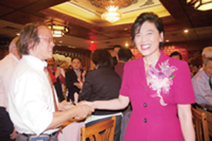 中新網9月3日電 據美國《星島日報》報道,美國南加州僑界為慶祝趙美心成為有史以來第一位當選聯邦眾議員的華裔女性,1日特別在洛杉磯華埠舉行盛大慶祝會,近300名老僑新僑一起祝賀這位華人之光。