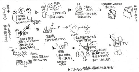在日本的女子大學(xué)講《媒體藝術(shù)論》,去年是春季,今年是秋季。不論季節(jié)如何,課堂講義一直堅(jiān)持手繪,而且也要求所有的學(xué)生提交報(bào)告時(shí)也必須手寫(xiě),用電腦打出來(lái)的文稿一律不受理!