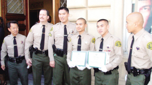 中新網9月20日電 據美國《僑報》報道,18日,在美國帕沙迪納市立劇場舉行的第378屆洛縣警局警察培訓學校畢業典禮上,有4位亞裔警員現身在70名畢業生的行列當中,其中包括兩名華裔,他們分別是圣蓋博居民何青源和柔似密居民陳得光。