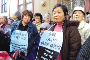 八名年齡在69至89歲的長(zhǎng)者,居住在北岸的一棟老樓中公寓已經(jīng)有幾十年。華協(xié)中心公布的資料顯示,大廈易手,新業(yè)主在2007年11月購(gòu)入后, 為了謀求更多利潤(rùn), 在去年以“艾利斯法案”要求所有住客在120天內(nèi)遷出他們已居住了差不多半個(gè)世紀(jì)的家園, 并把公寓轉(zhuǎn)為“產(chǎn)權(quán)共有”。雖然業(yè)主的逼遷限期早已過(guò)了數(shù)周,這些無(wú)助的長(zhǎng)者堅(jiān)決在寒冬下守護(hù)家園。