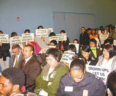 南費城高中亞裔學生、家長和華埠小區領袖百余人,9日下午手持“是誰讓它發生”等抗議標語,游行至教育局參加公聽會,游行者高喊“停止學校暴力”、“給我安全教育環境”,抒發壓抑多時的不滿。