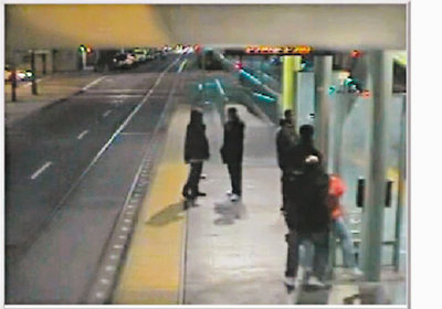 根據(jù)錄像帶影像信息,受害人與五名非裔青少年于案發(fā)前七分鐘先后走上T線輕軌公車站月臺(tái)。在這七分鐘內(nèi),華裔婦人不時(shí)遠(yuǎn)看馬路前方,希望公交車快點(diǎn)來到,也不時(shí)避開五名非裔青少年,當(dāng)五少年走近她時(shí),她就移步月臺(tái)中間墻壁的另一邊。